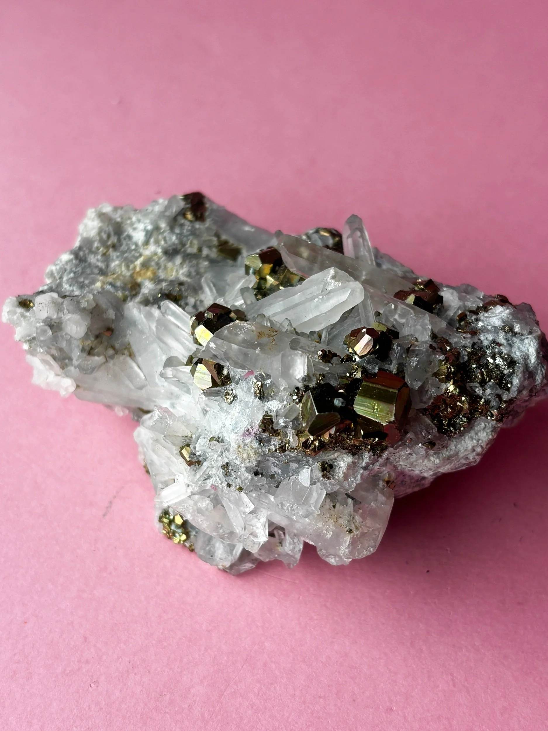 Pyrite on Quartz Cluster